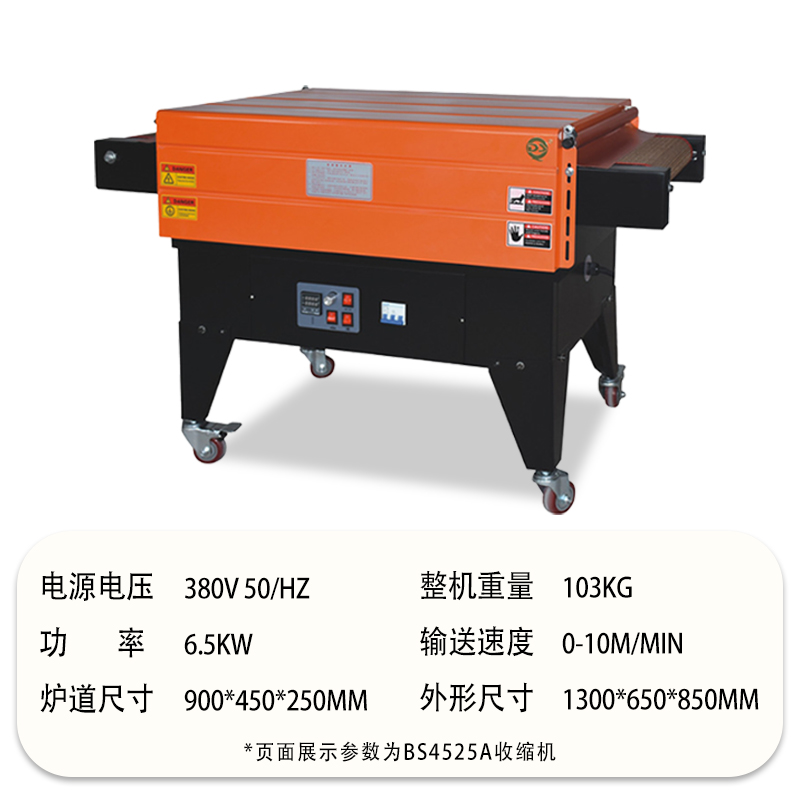 - 收縮溫度范圍:一般為 120 - 200℃。不同的熱收縮薄膜有不同的最佳收縮溫度,在選型時(shí)要考慮機(jī)器的溫度范圍是否能夠滿(mǎn)足所使用薄膜的要求。例如,PVC 薄膜的收縮溫度一般在 140 - 160℃,POF 薄膜的收縮溫度約為 160 - 180℃。